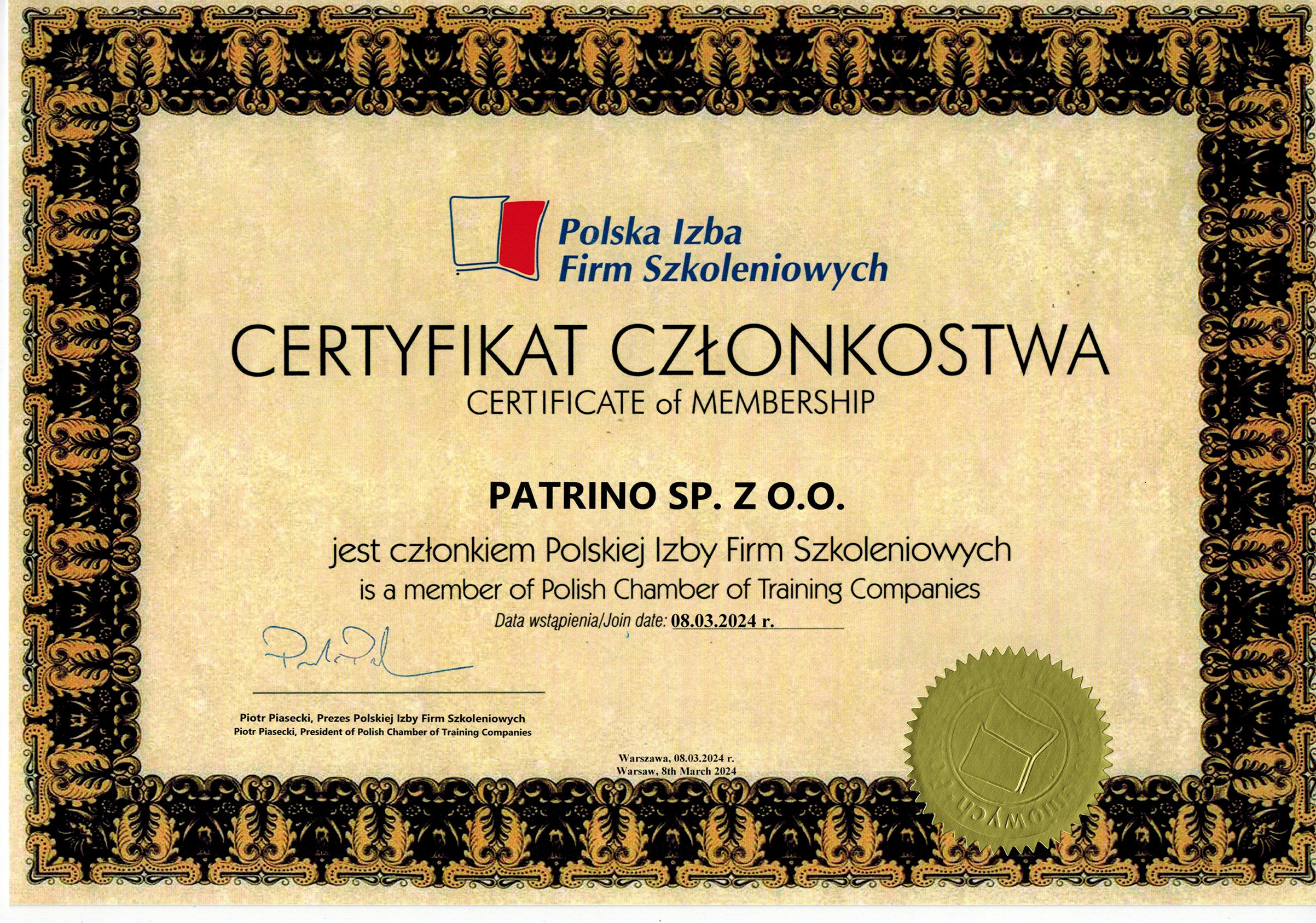- Jesteśmy aktywnymi członkami Polskiej Izby Firm Szkoleniowych.